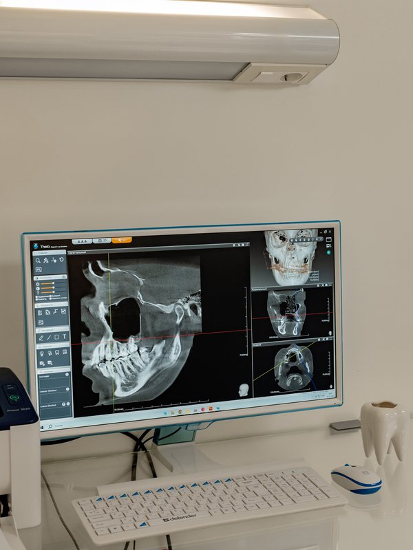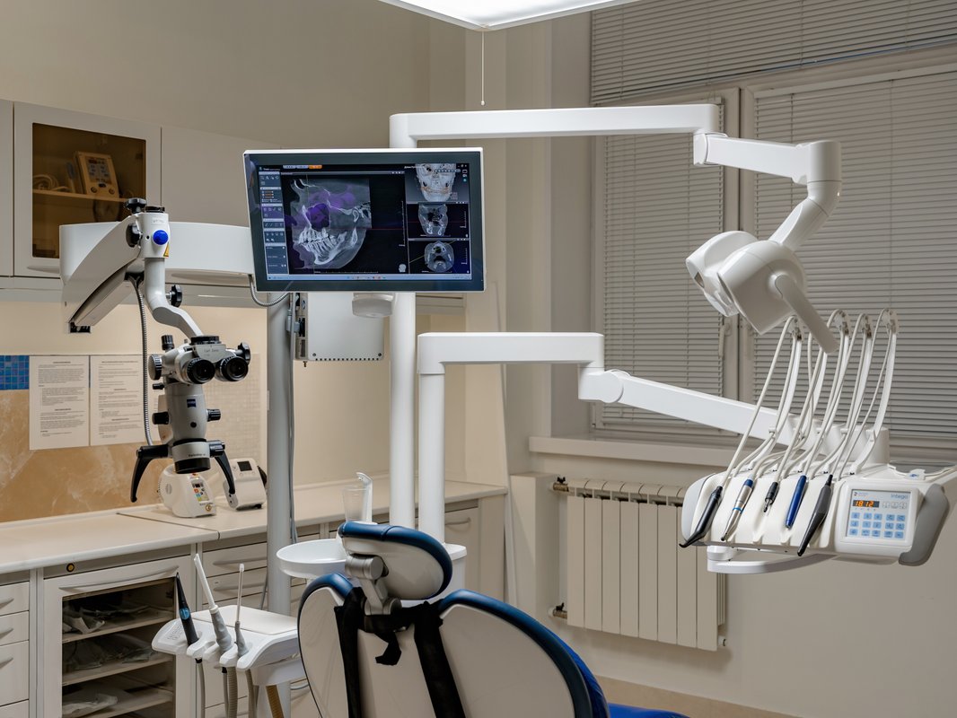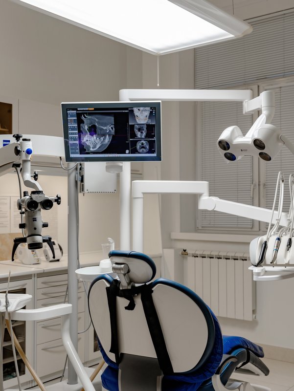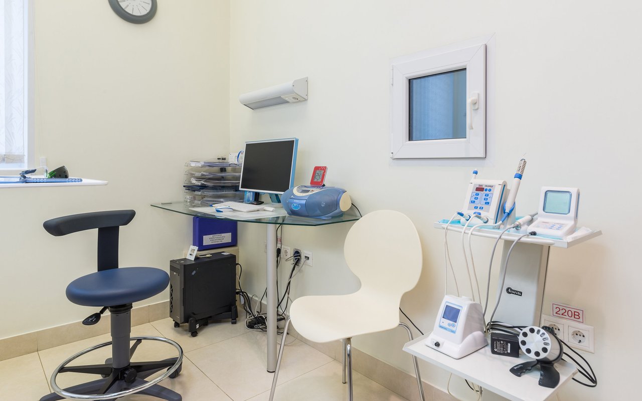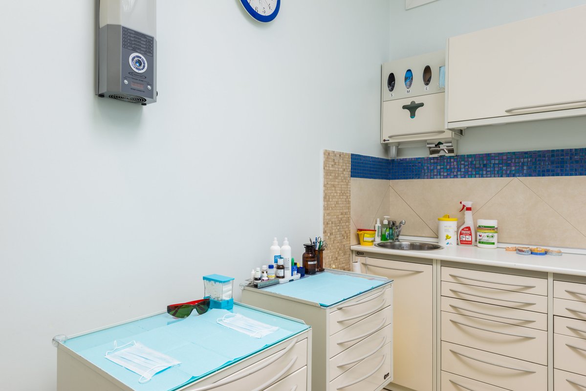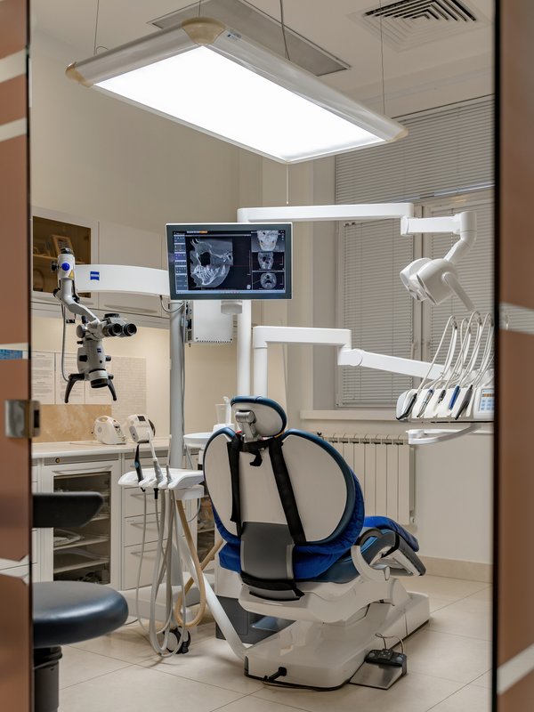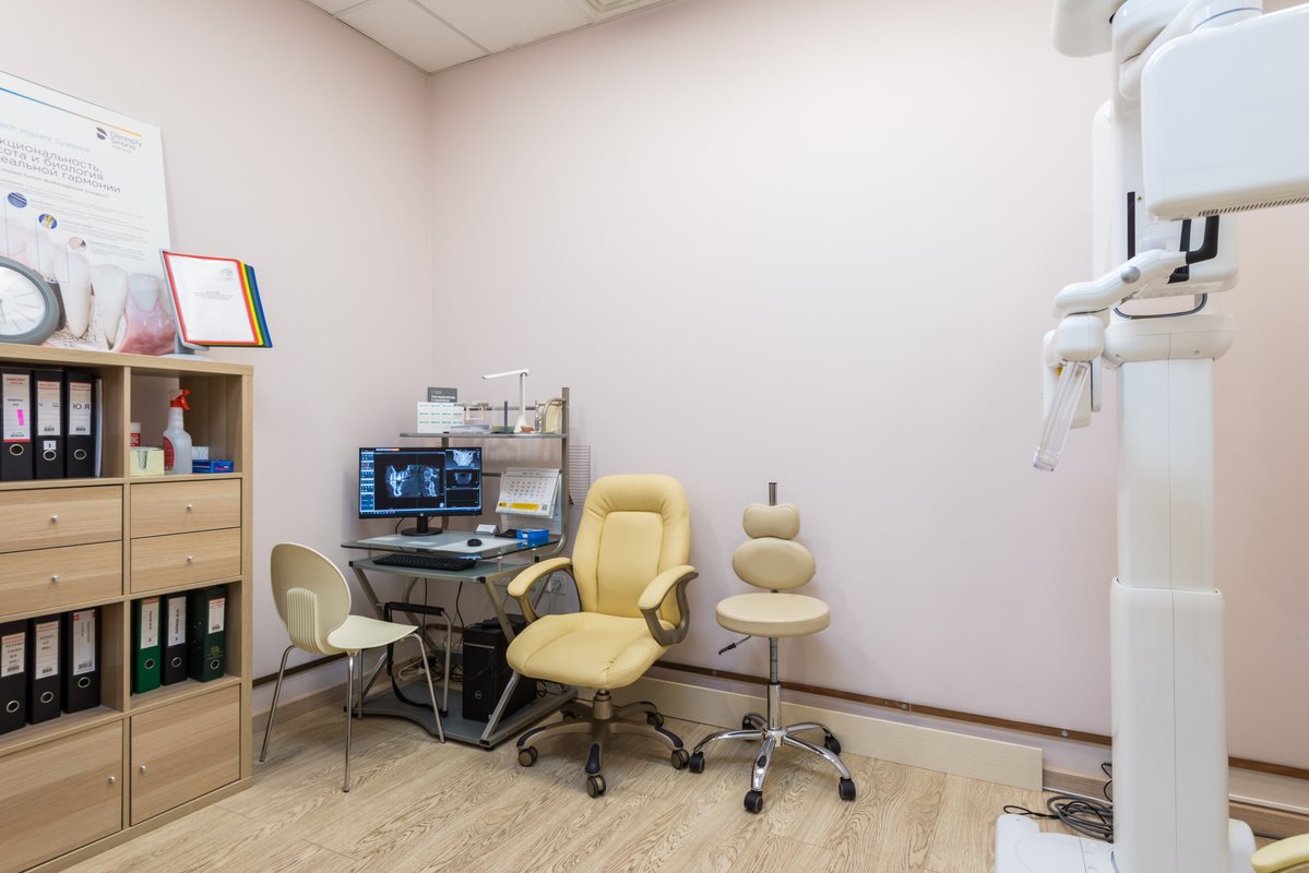 Там, кажется, четыре лечебных кабинета, отдельный рентген-кабинет с радиовизиографом, чистый туалет, большой холл.